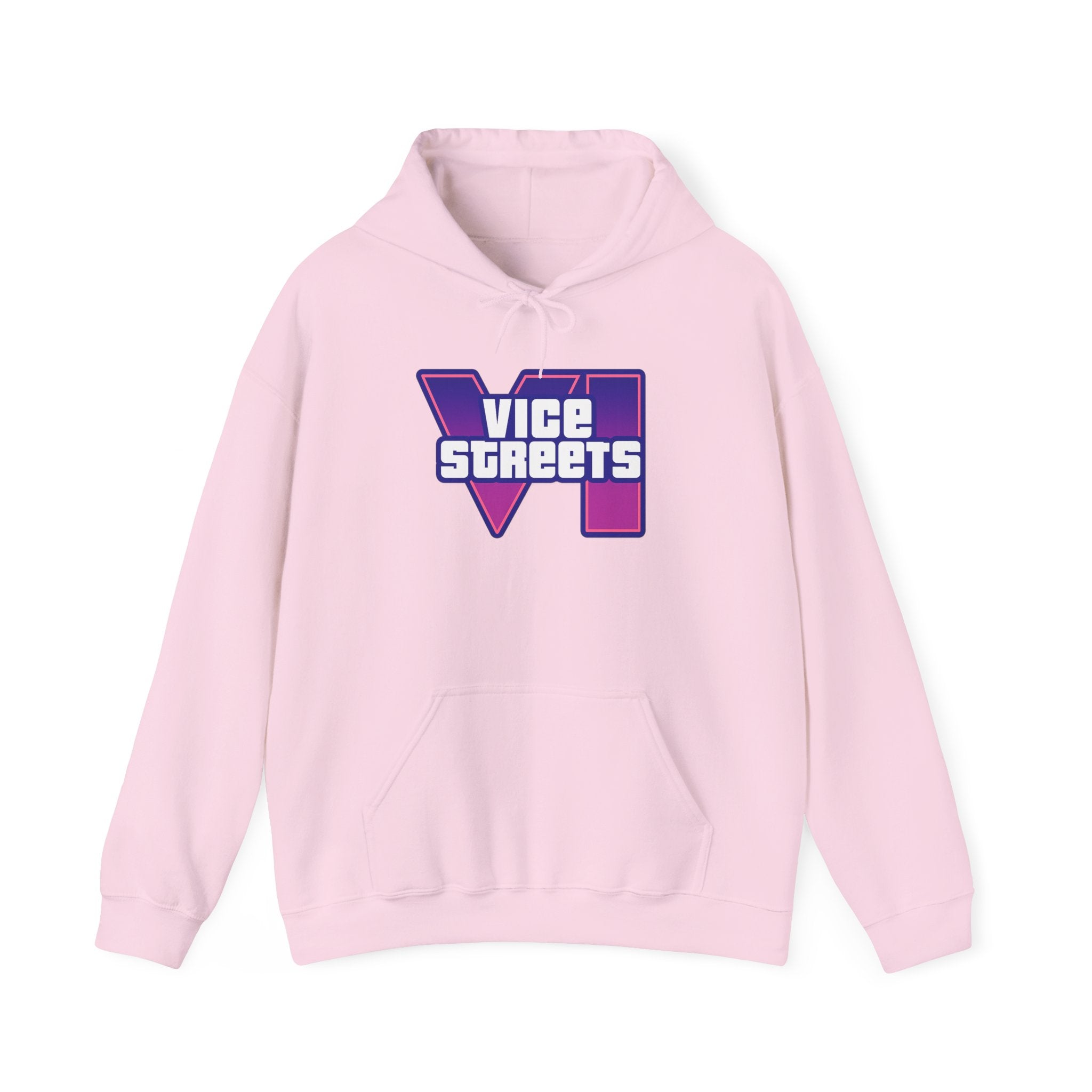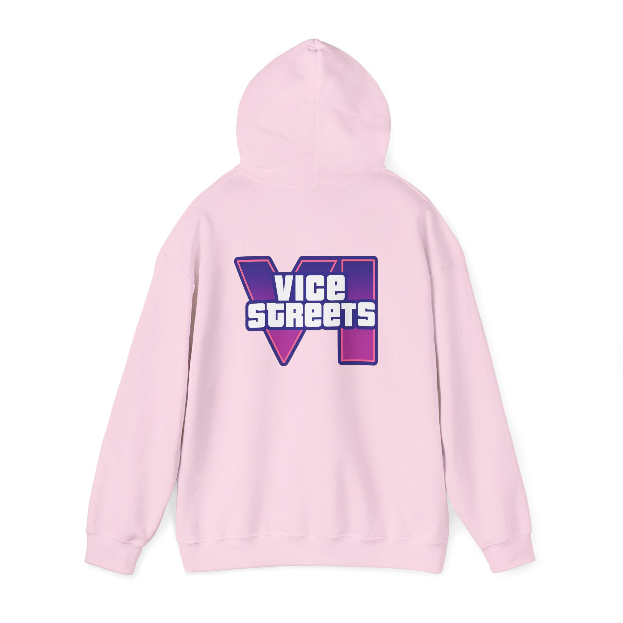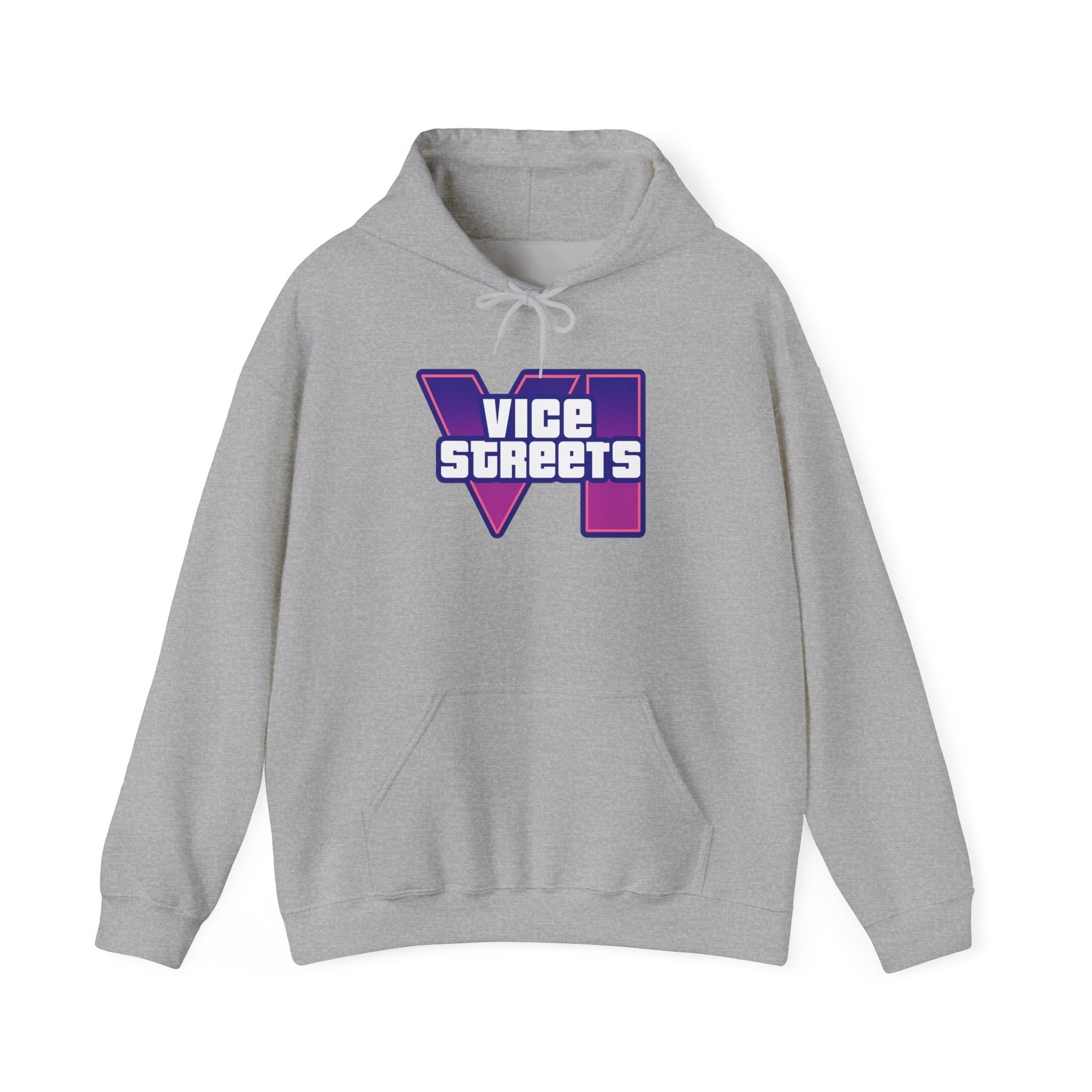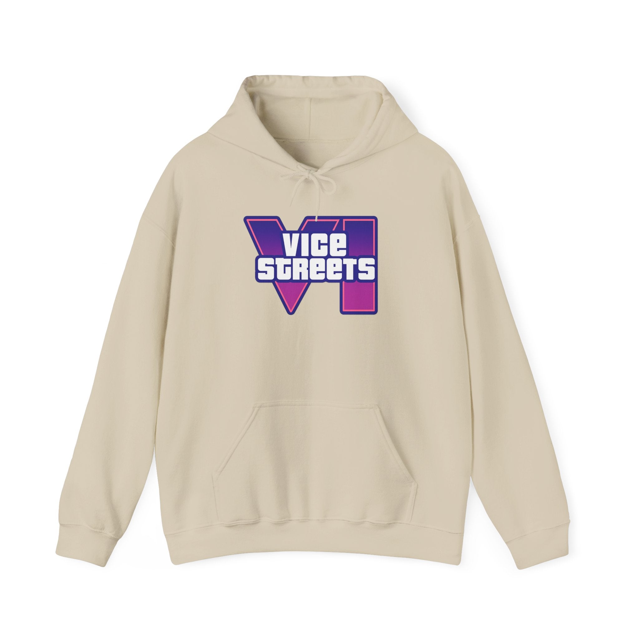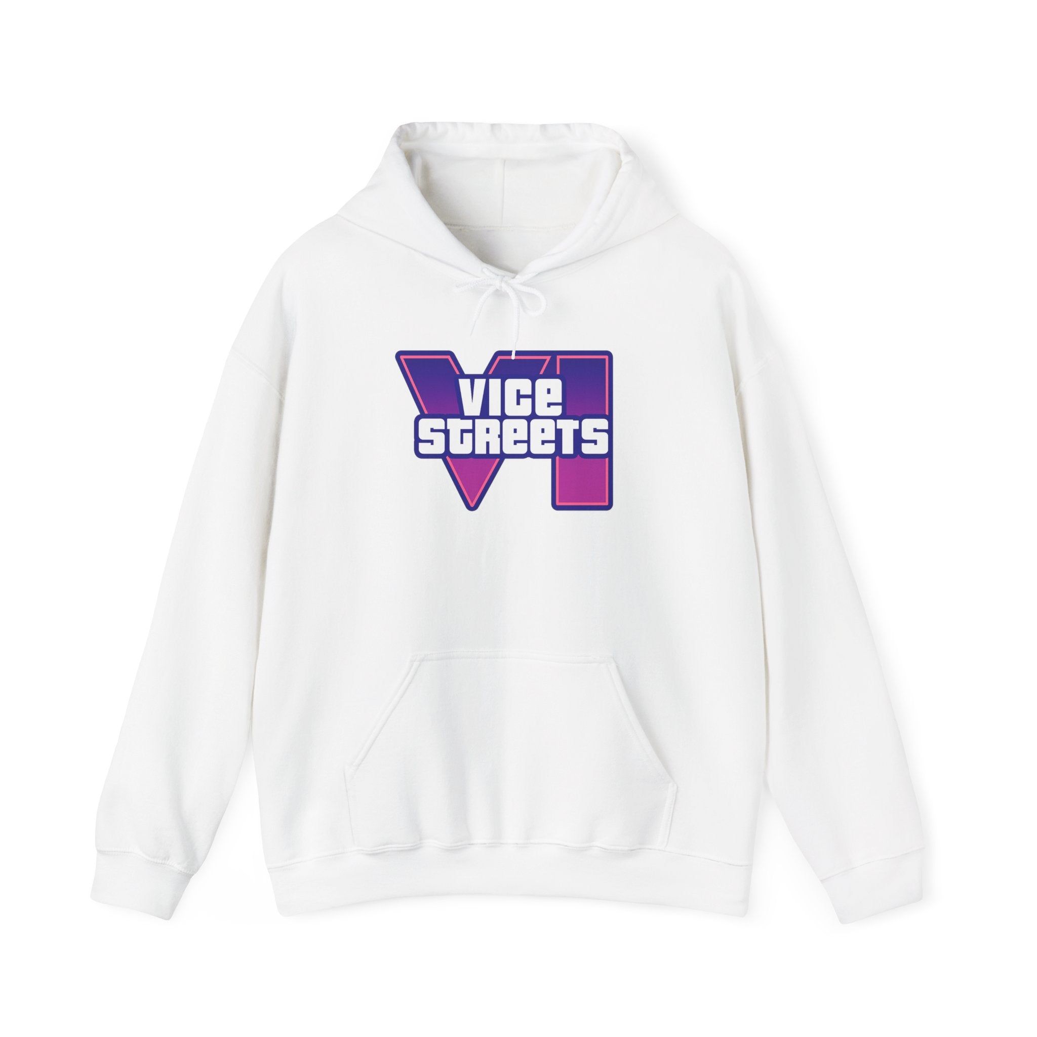 Slip into a hoodie that feels like neon nights and late‑hour city cruises. This roomy pullover wraps you in soft, midweight warmth while a bold, retro-futuristic “VICE STREETS” graphic pops across the chest and back in vivid purple and magenta. The kangaroo pouch keeps hands cozy and the adjustable hood tucks up for extra shelter. Wear it on evening walks, vinyl‑shop runs, or when you’re chasing that electric, 80s‑inspired mood — it layers easily under a jacket or stands alone as the statement piece of your outfit.