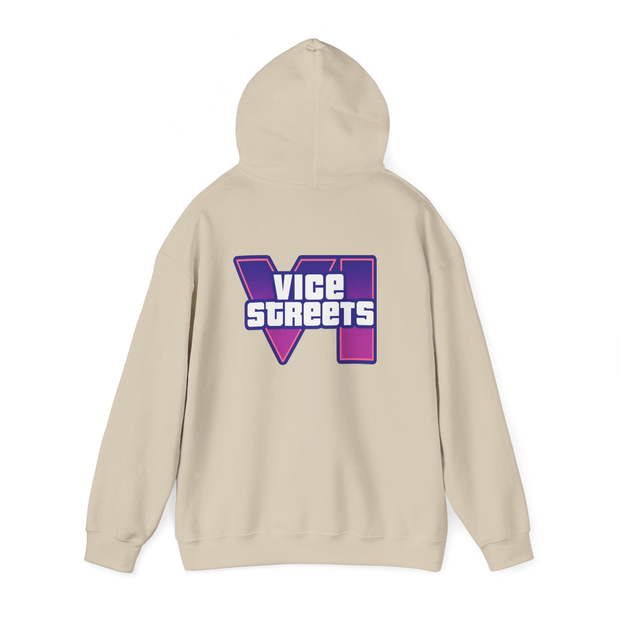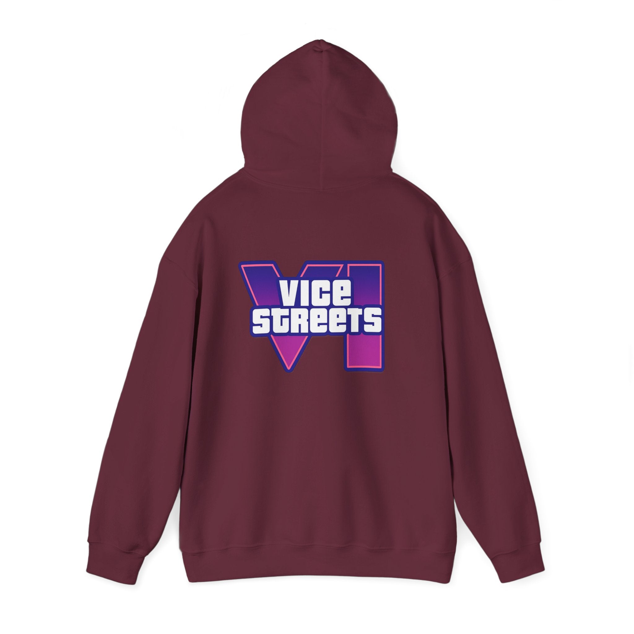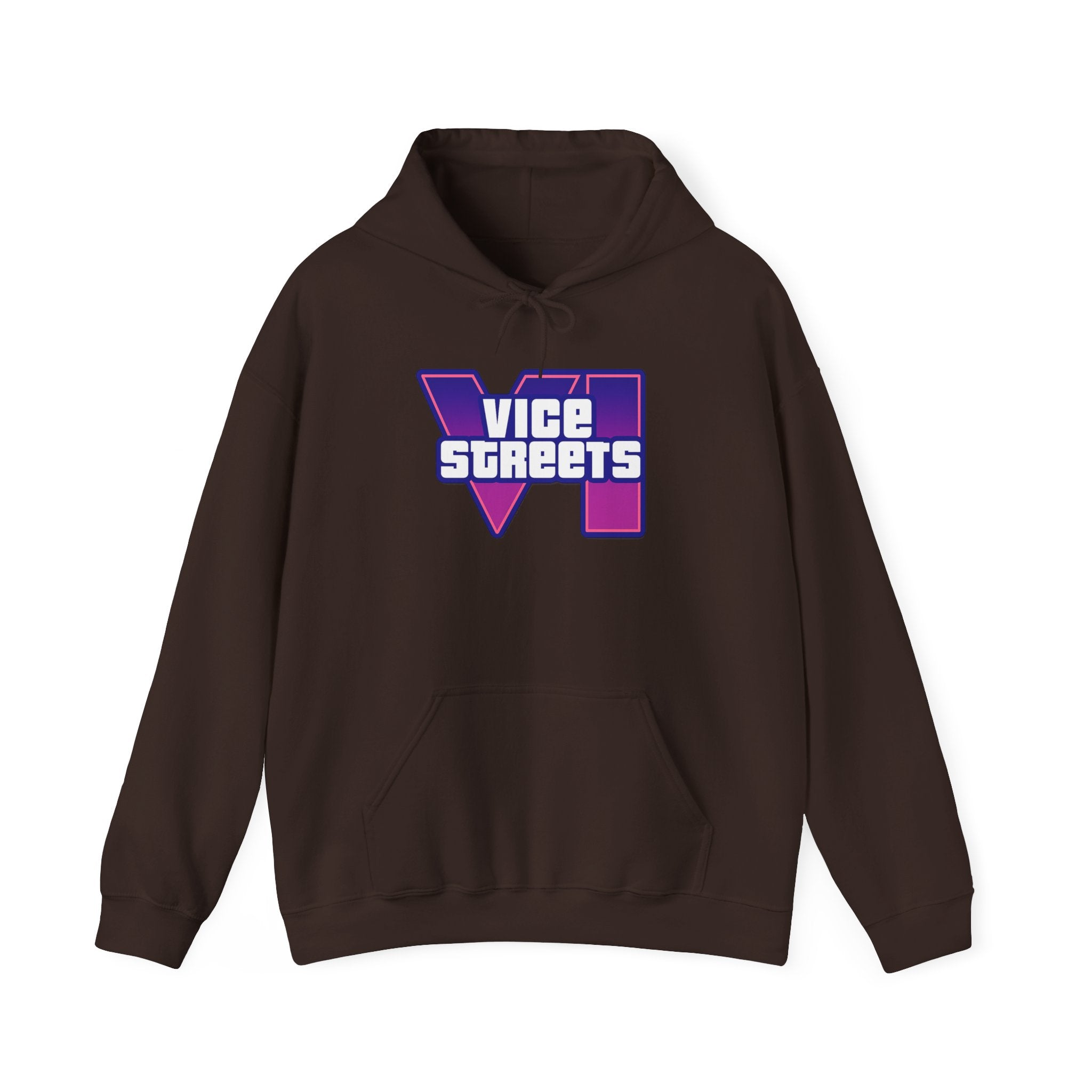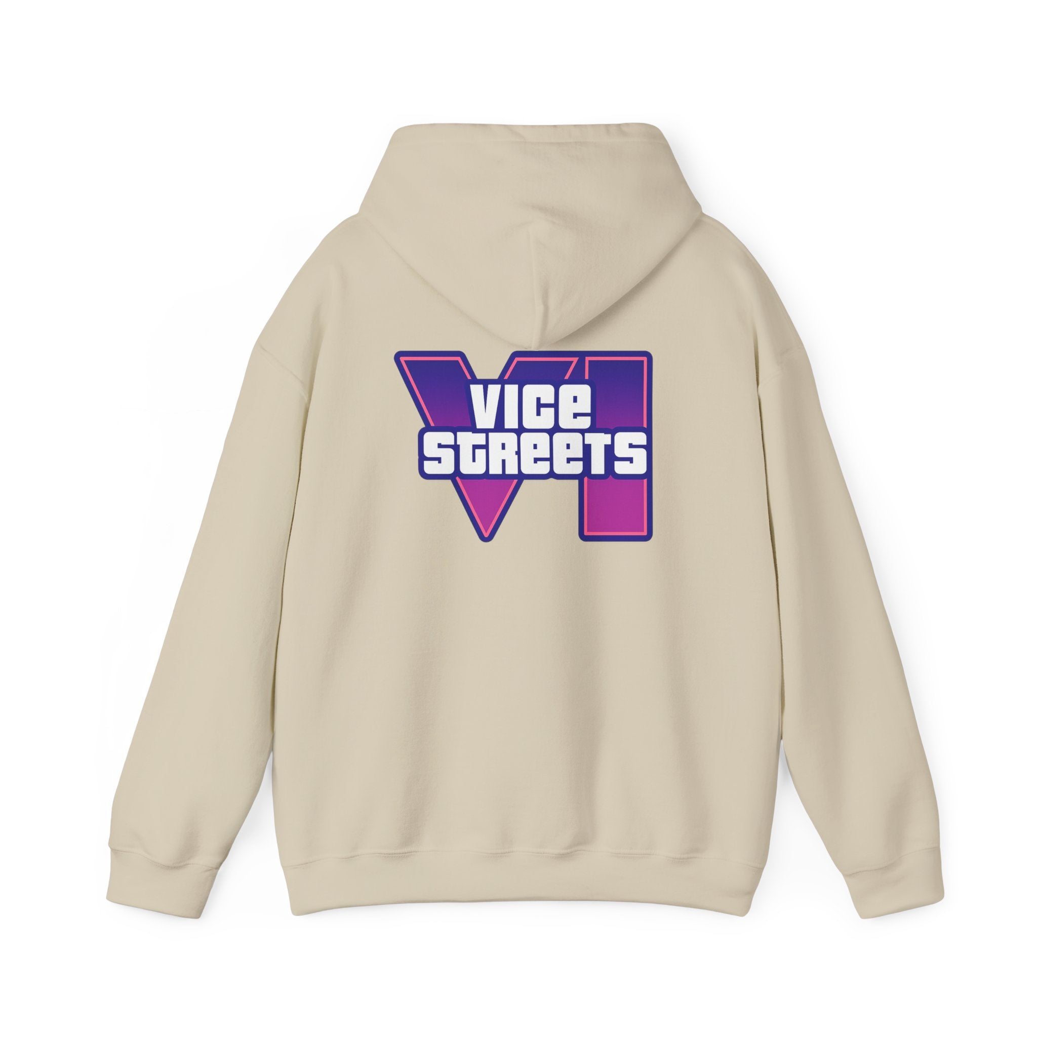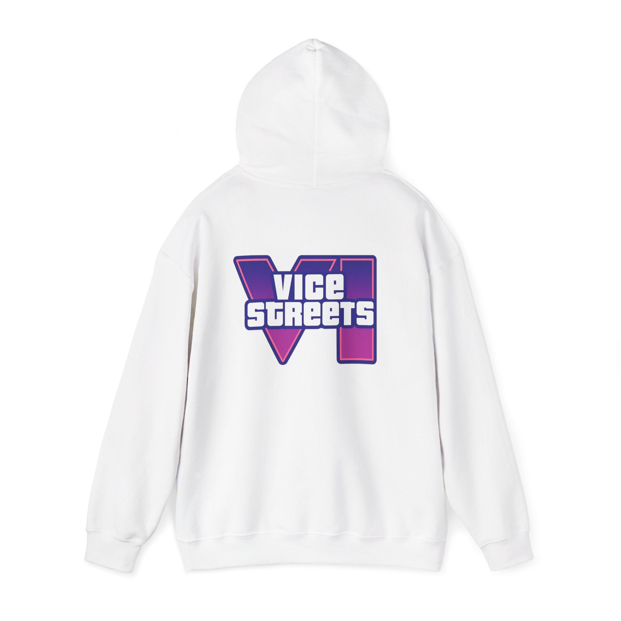 Slip into a hoodie that feels like neon nights and late‑hour city cruises. This roomy pullover wraps you in soft, midweight warmth while a bold, retro-futuristic “VICE STREETS” graphic pops across the chest and back in vivid purple and magenta. The kangaroo pouch keeps hands cozy and the adjustable hood tucks up for extra shelter. Wear it on evening walks, vinyl‑shop runs, or when you’re chasing that electric, 80s‑inspired mood — it layers easily under a jacket or stands alone as the statement piece of your outfit.