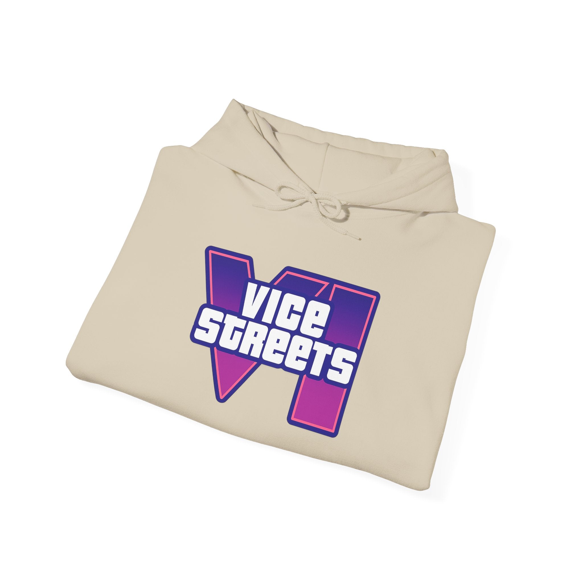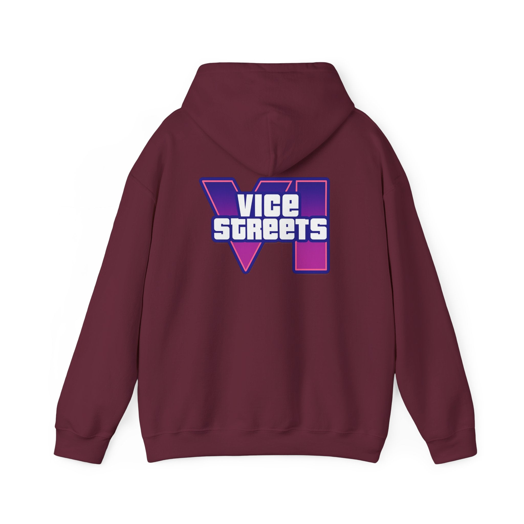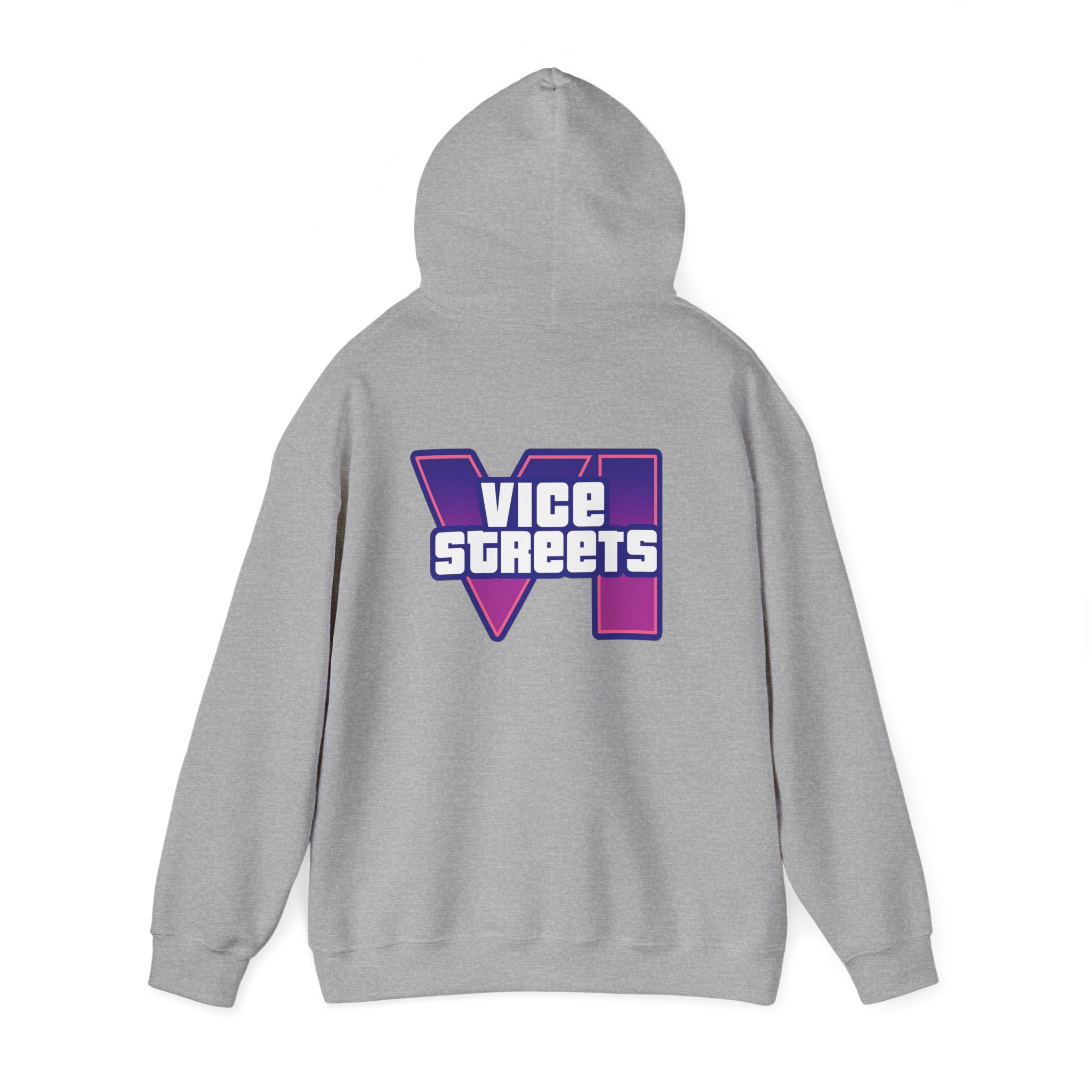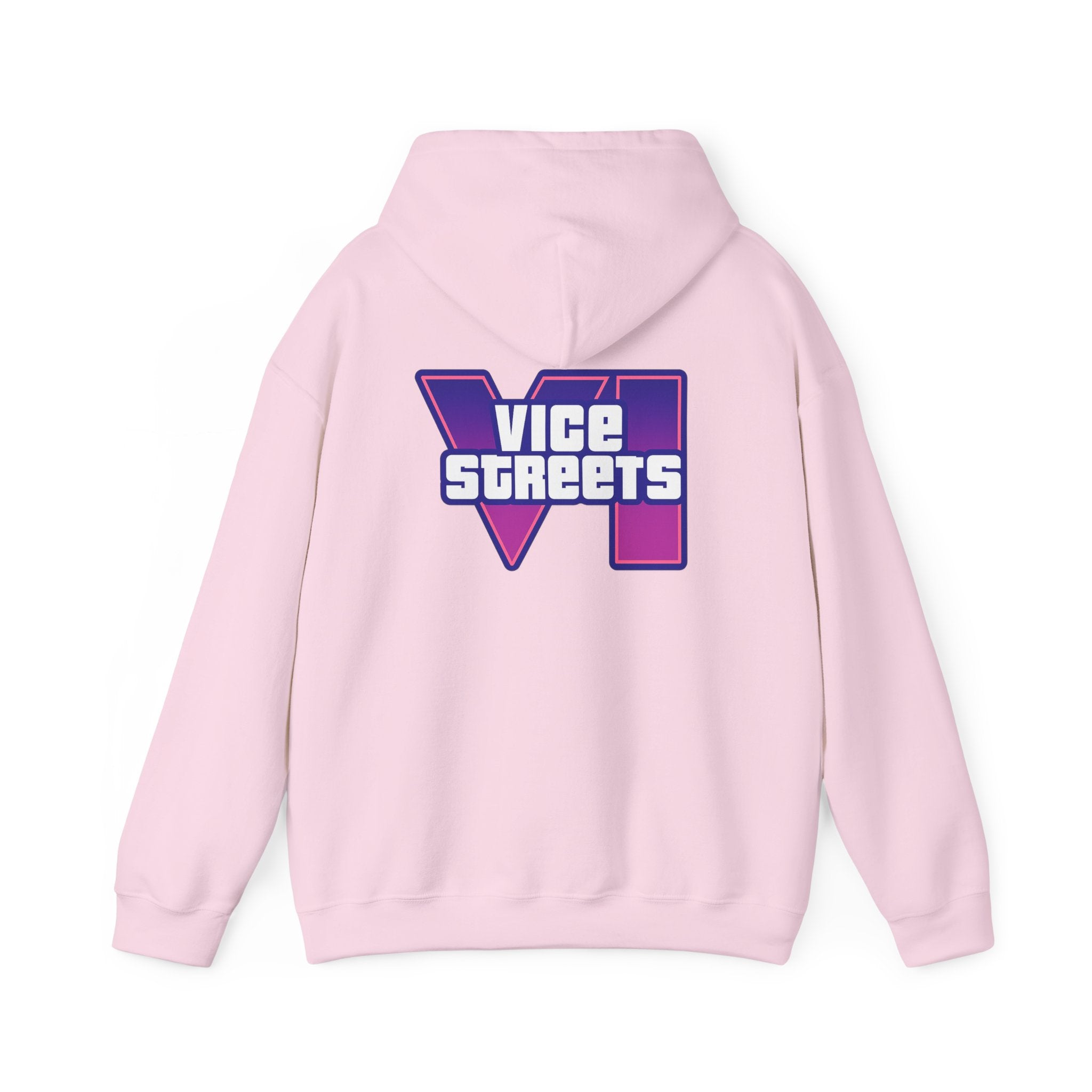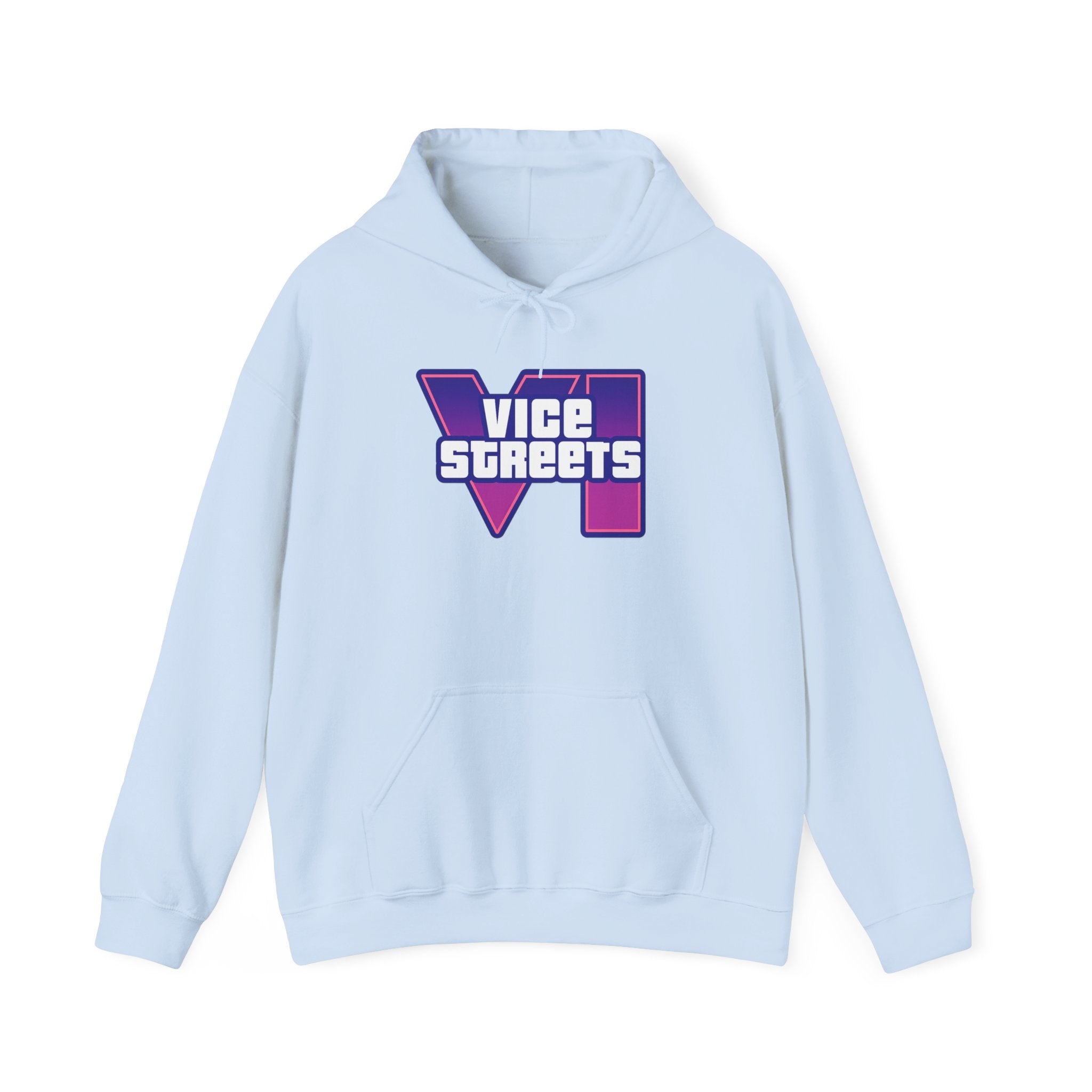 Slip into a hoodie that feels like neon nights and late‑hour city cruises. This roomy pullover wraps you in soft, midweight warmth while a bold, retro-futuristic “VICE STREETS” graphic pops across the chest and back in vivid purple and magenta. The kangaroo pouch keeps hands cozy and the adjustable hood tucks up for extra shelter. Wear it on evening walks, vinyl‑shop runs, or when you’re chasing that electric, 80s‑inspired mood — it layers easily under a jacket or stands alone as the statement piece of your outfit.