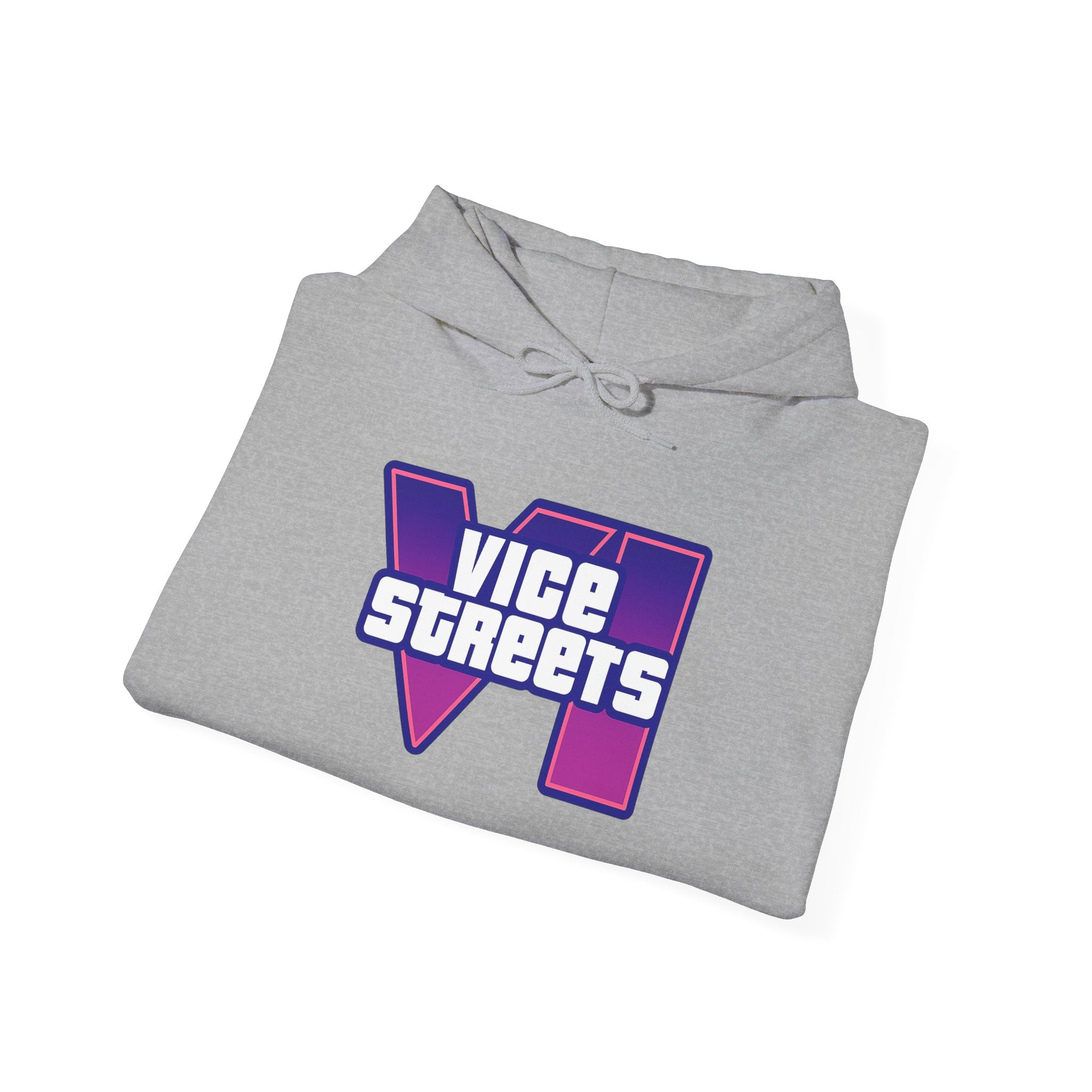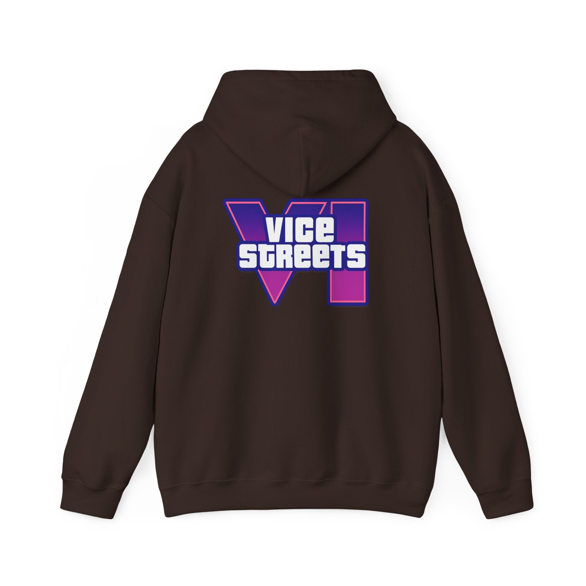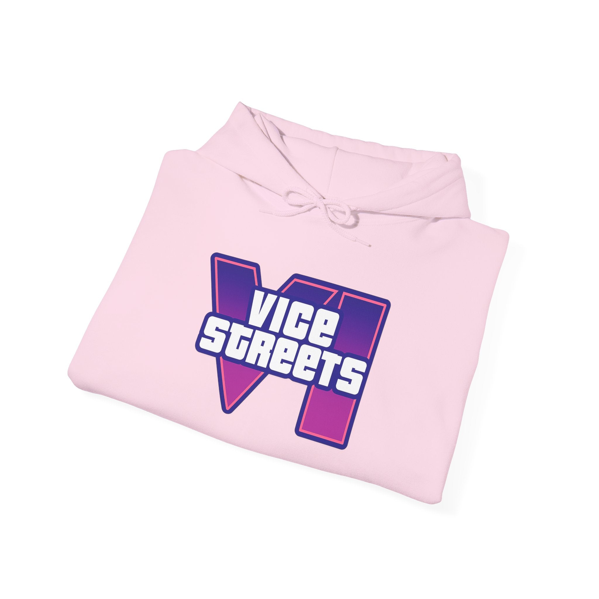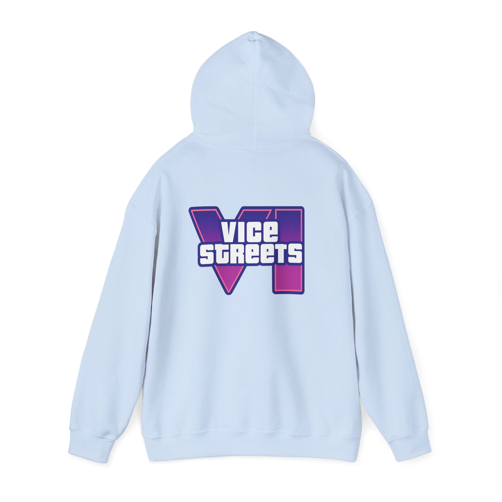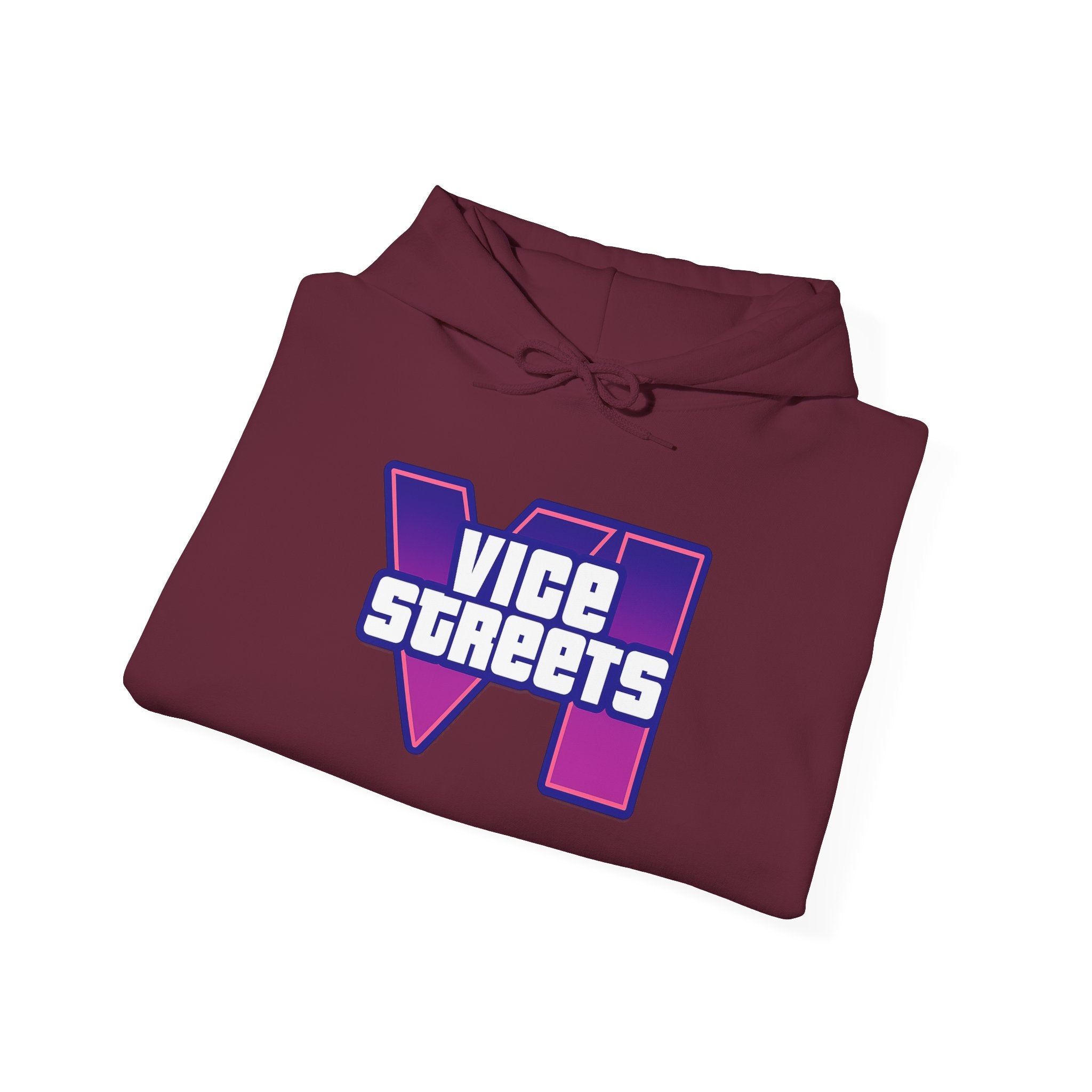 Slip into a hoodie that feels like neon nights and late‑hour city cruises. This roomy pullover wraps you in soft, midweight warmth while a bold, retro-futuristic “VICE STREETS” graphic pops across the chest and back in vivid purple and magenta. The kangaroo pouch keeps hands cozy and the adjustable hood tucks up for extra shelter. Wear it on evening walks, vinyl‑shop runs, or when you’re chasing that electric, 80s‑inspired mood — it layers easily under a jacket or stands alone as the statement piece of your outfit.