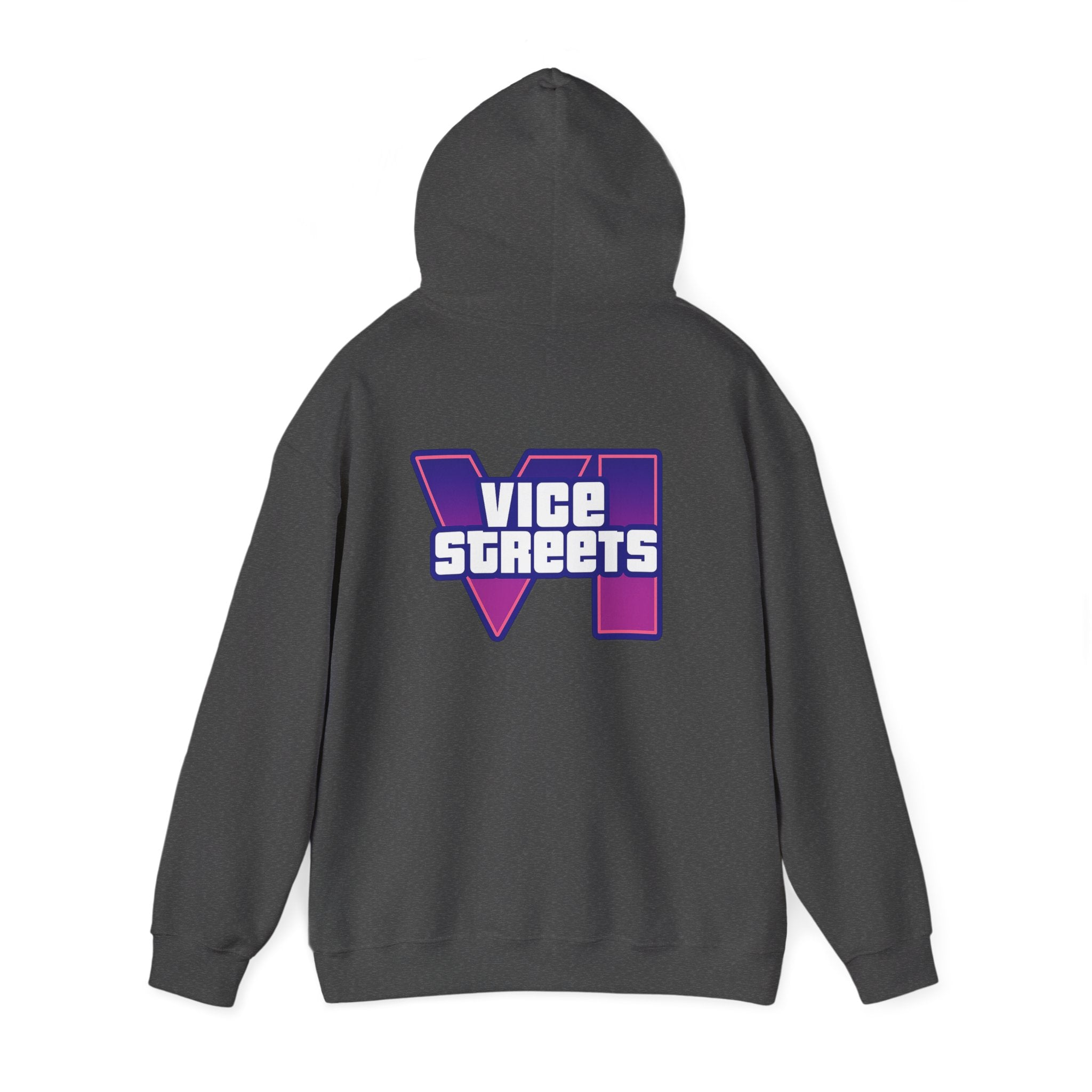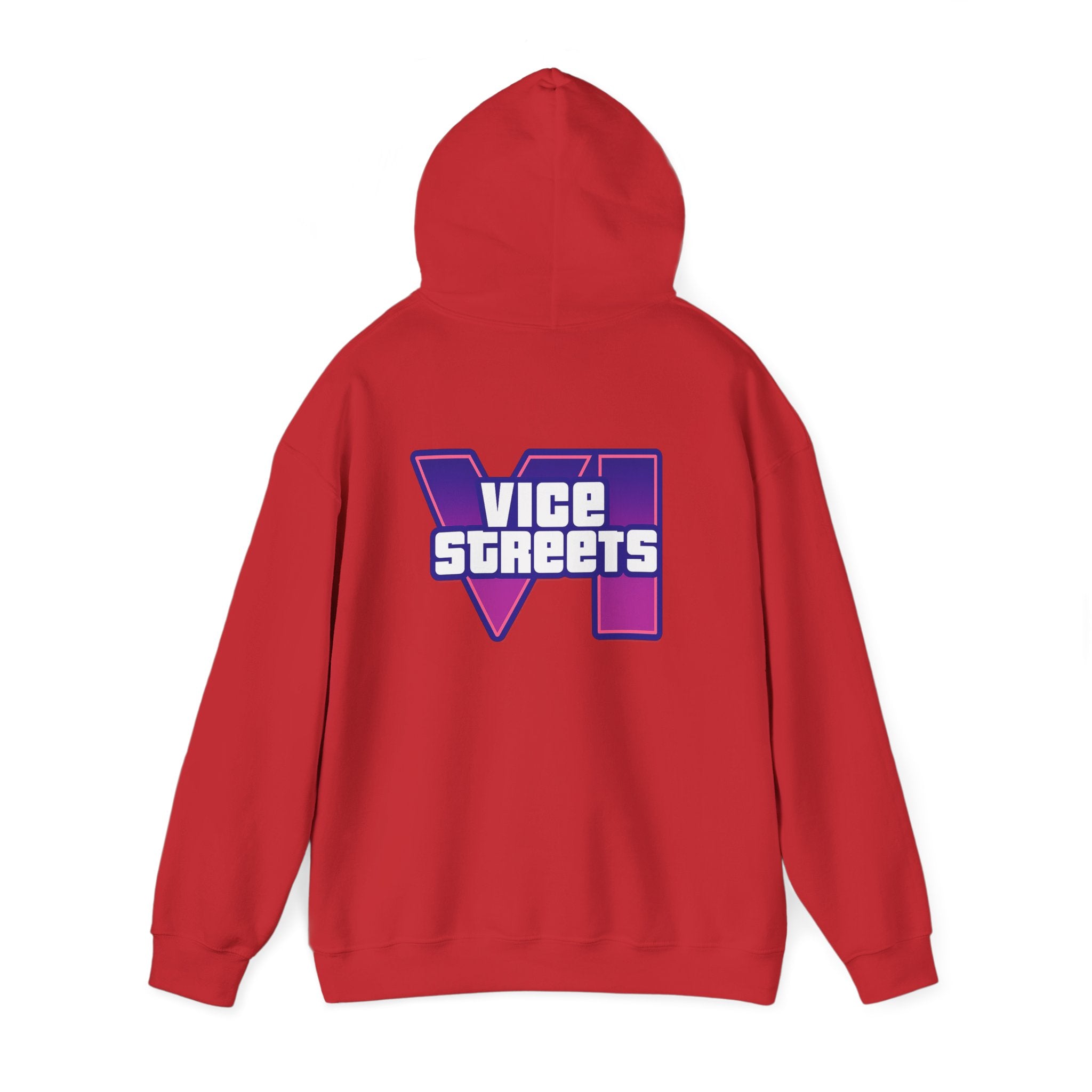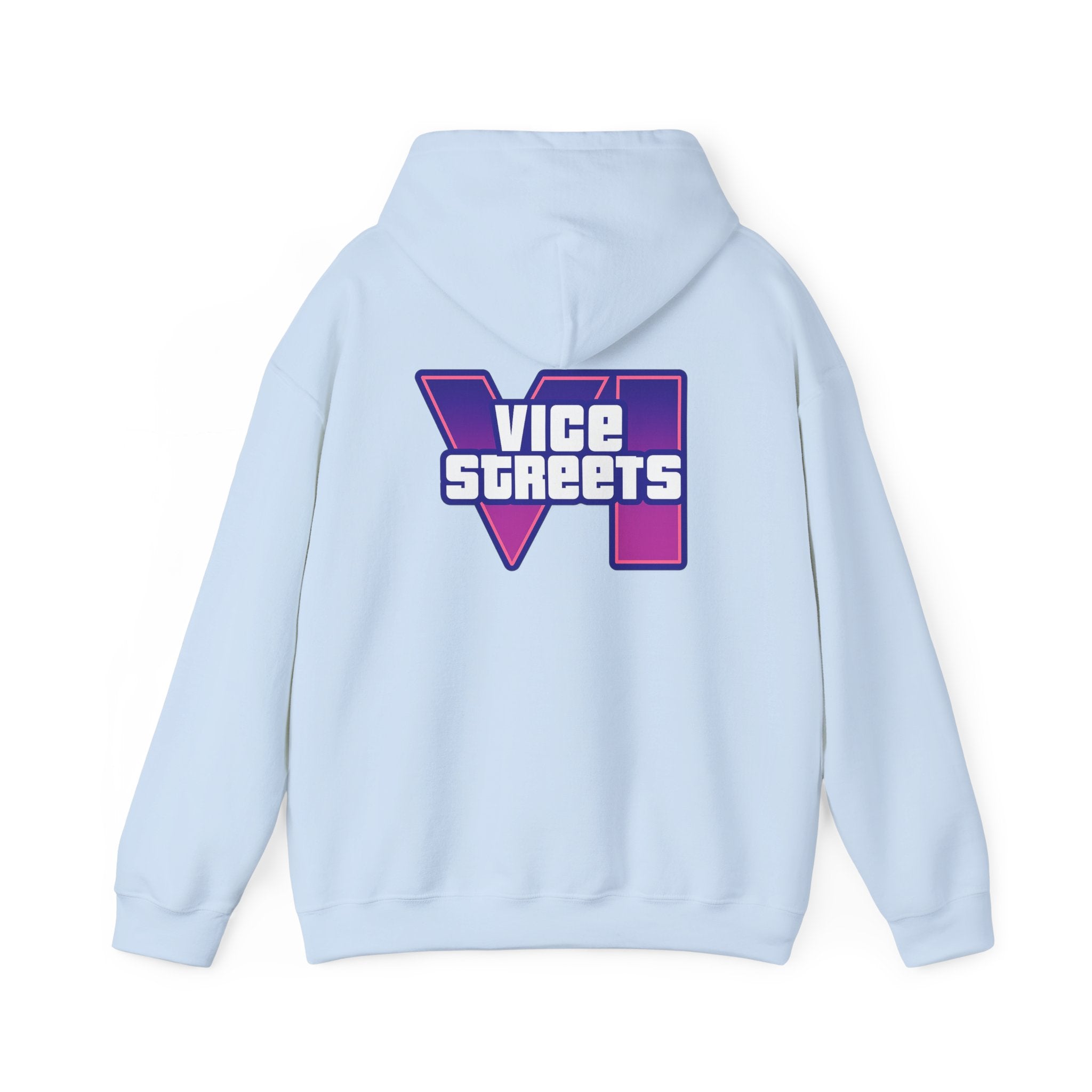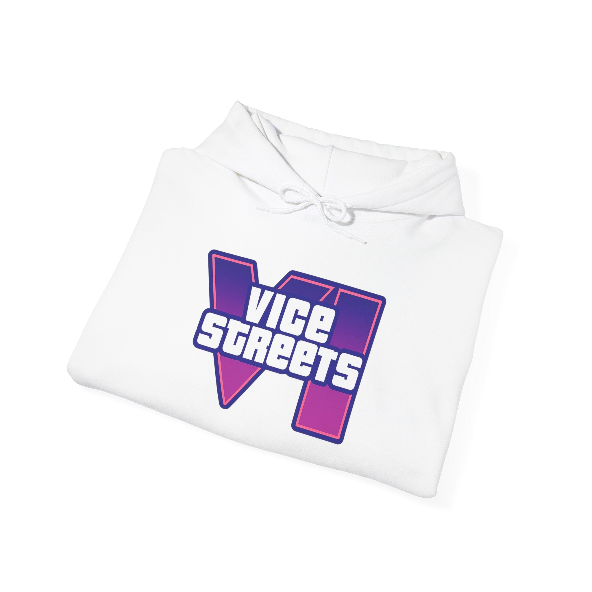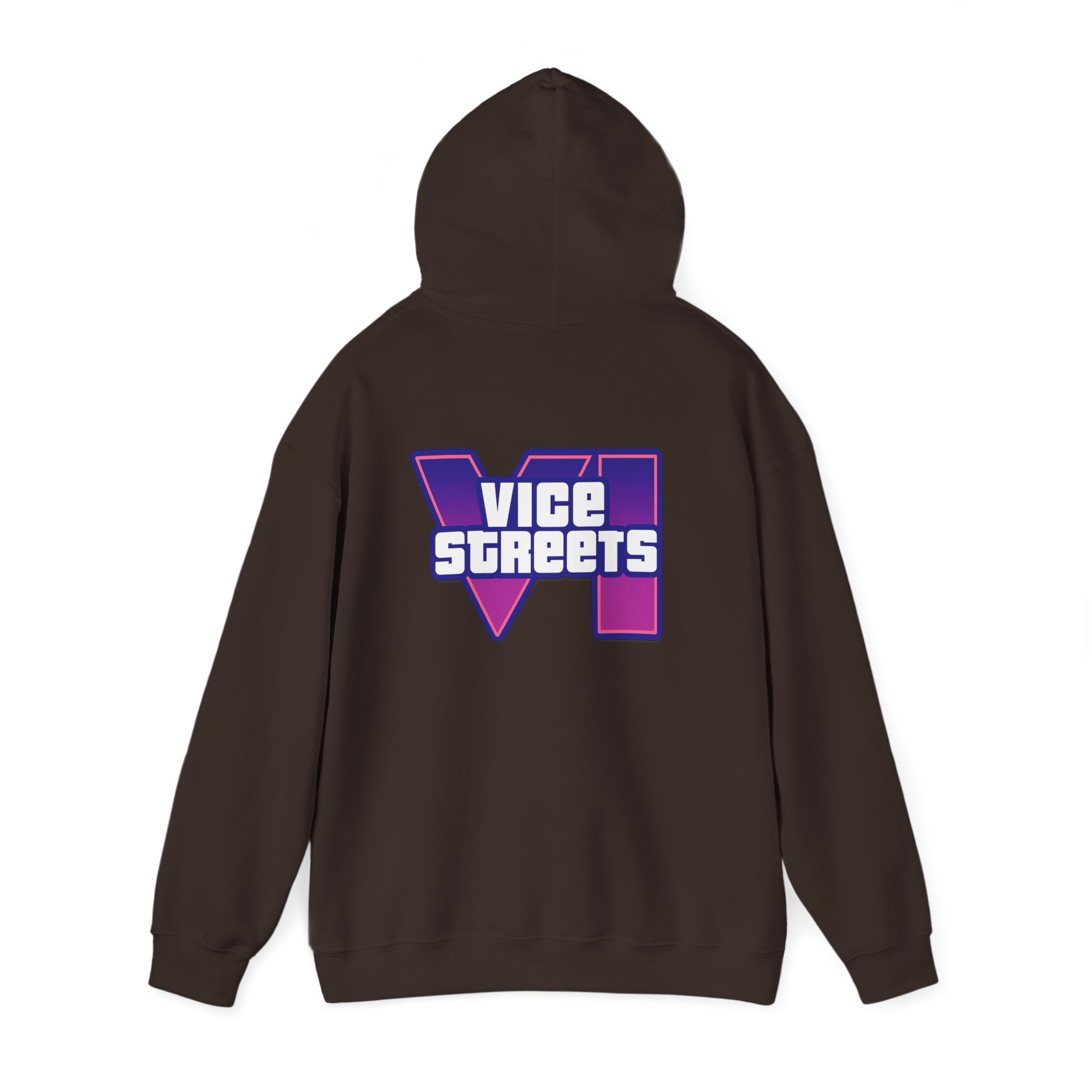 Slip into a hoodie that feels like neon nights and late‑hour city cruises. This roomy pullover wraps you in soft, midweight warmth while a bold, retro-futuristic “VICE STREETS” graphic pops across the chest and back in vivid purple and magenta. The kangaroo pouch keeps hands cozy and the adjustable hood tucks up for extra shelter. Wear it on evening walks, vinyl‑shop runs, or when you’re chasing that electric, 80s‑inspired mood — it layers easily under a jacket or stands alone as the statement piece of your outfit.